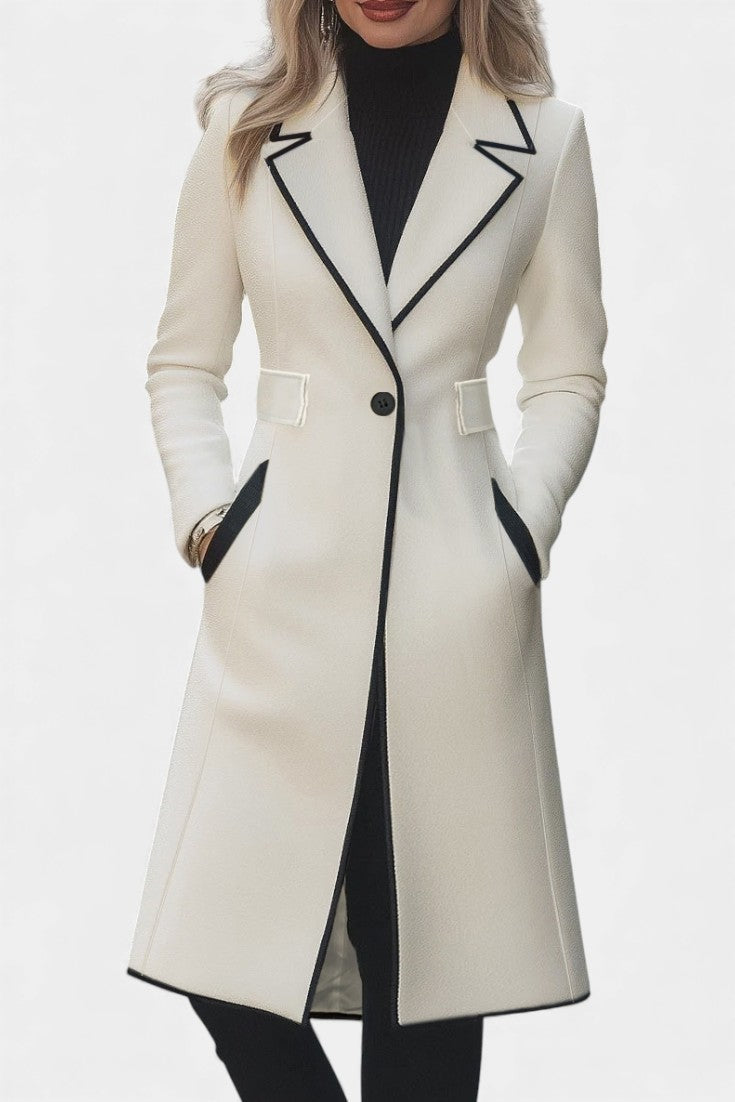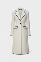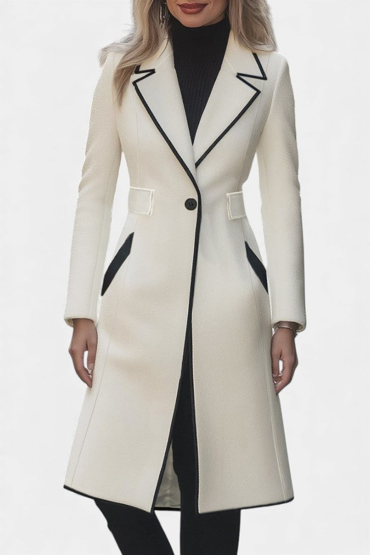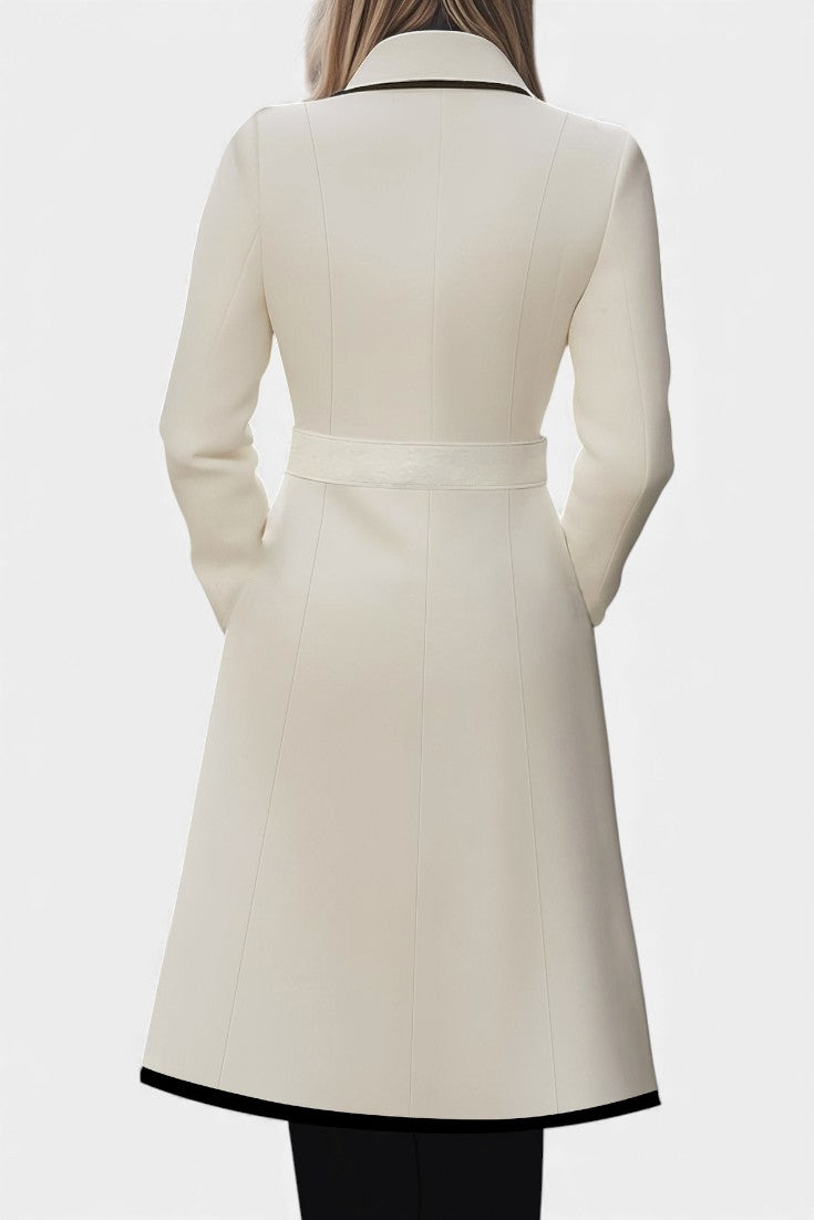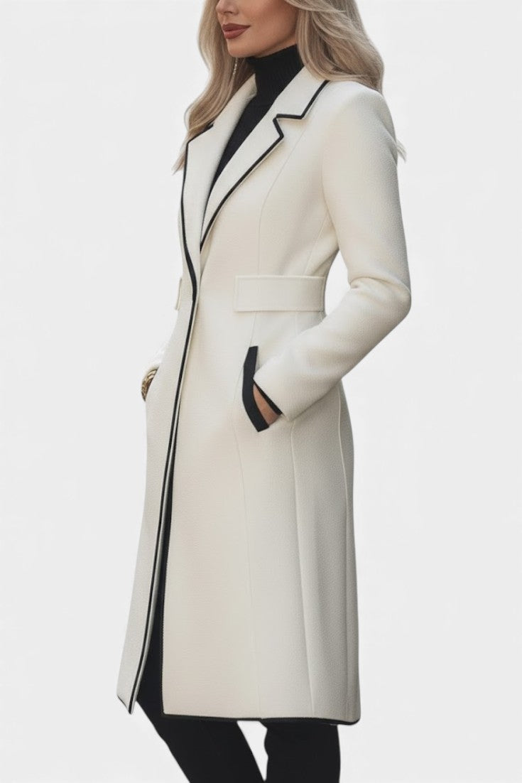 Hayden Aryana | Chic Long White Coat with Contrasting Details