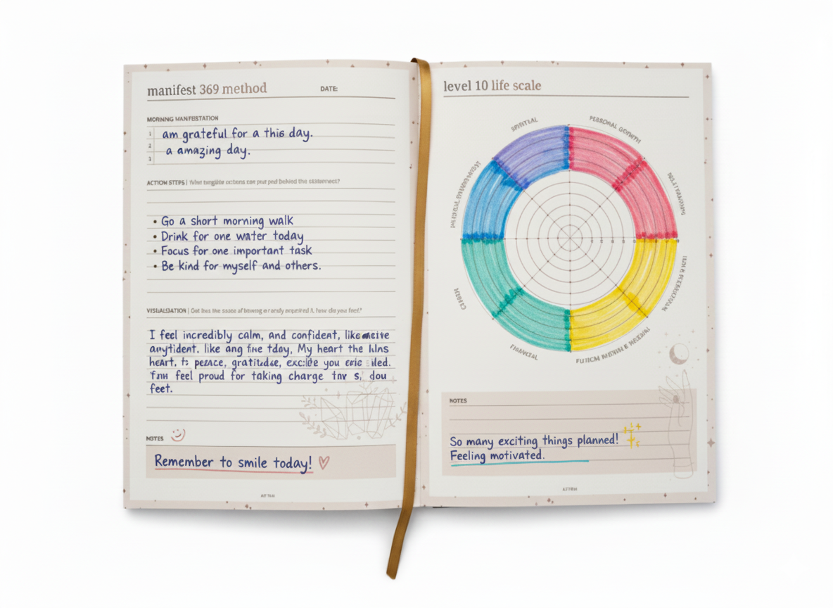 I've tried many manifestation journals, but this one is truly different. The psychology behind it ensures that you're not just writing down what you want but also understanding how to make it happen. The free coaching has helped me tremendously. I feel more motivated than ever! I've tried many manifestation journals, but this one is truly different. The psychology behind it ensures that you're not just writing down what you want but also understanding how to make it happen. The free coaching has helped me tremendously.... I've tried many manifestation journals, but this one is truly different. The psychology behind it ensures that you're not just writing down what you want but also understanding how to make it happen. The free coaching has helped me tremendously. I feel more motivated than ever!