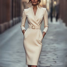 Hayden Lume | Refined Dress With Belt And Mandarin Collar